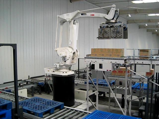 碼垛機器人適應于化工、飲料、食品、啤酒、塑料、空調等生產企業對紙箱、袋裝、罐裝、盒裝、瓶裝等各種形狀的成品進行裝箱和碼垛。結構非常簡單,容易保養及維修;主要構成零件少,配件少,所以維護費用很低;機械手碼垛機可以設置在狹窄的空間,即可有效的使用;全部控制可在控制柜屏幕上操作即可,操作非常簡單。配備機器手可替代不少工人的工作量,由此每年能節省幾十萬的人力資源成本,達到減員增效。